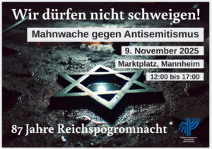 Am 9. November jährt sich die Reichspogromnacht zum 87. Mal – jene Nacht, in der in ganz Deutschland, auch hier in Mannheim, die Synagogen brannten. Es war die Nacht, in der Nachbarn zu Tätern wurden, in der aus Ausgrenzung Gewalt wurde – und aus Gleichgültigkeit Mitwissen.